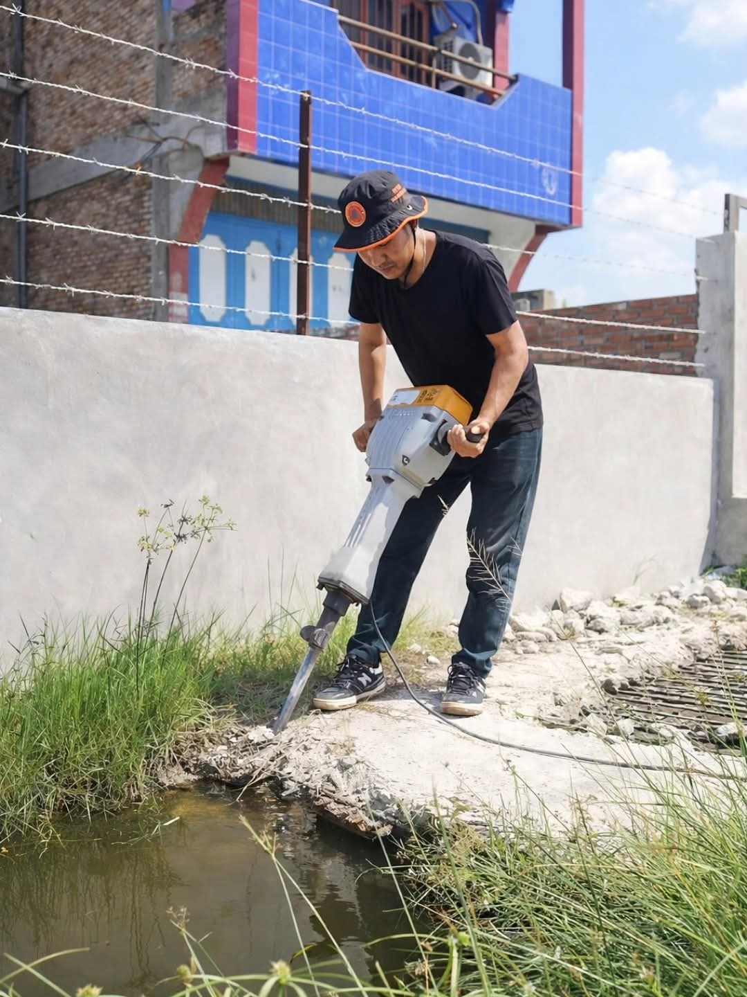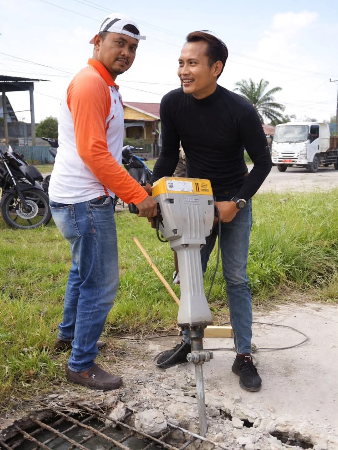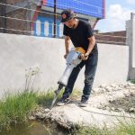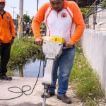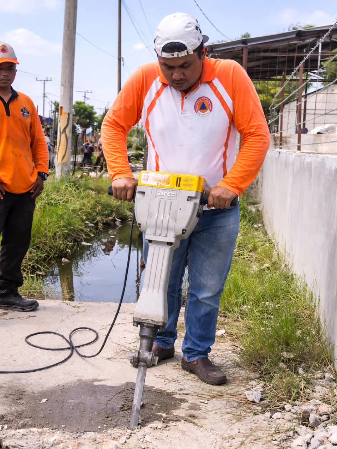 Pembukaan beton penutup drainase kali ini dilakukan pada titik lokasi yang mengalami sedimentasi parah, dipenuhi lumpur dan genangan air. Kondisi tersebut menyebabkan aliran tersumbat sehingga diperlukan akses maksimal untuk proses pengerukan menggunakan alat berat.