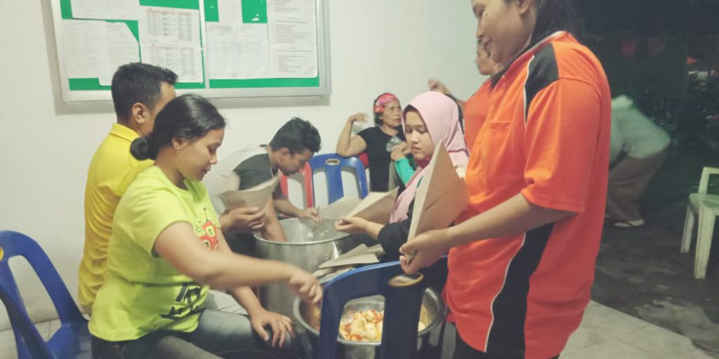 Kabid Kedaruratan dan Logistik Ibu Nurmiah, SE dan Kabid Pencegahan dan Kesiapsiagaan Ibu Aida Mirani, SE dan dibantu satgas perempuan melaksanakan kegiatan memasak untuk makanan Para Satgas dan Himpipsos.19/12/2018 / 20.00 WIB.