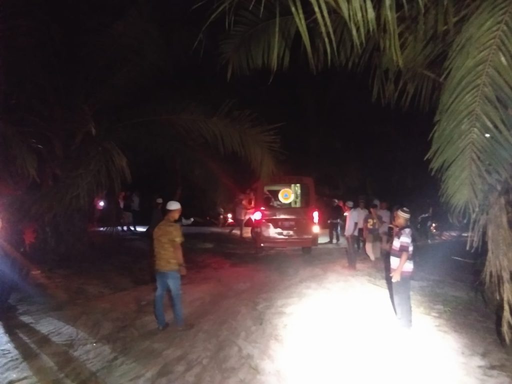 Setelah di fardhu kifayahkan jenazah lalu dibawa menggunakan mobil ambulan BPBD Kota Tanjungbalai untuk di makamkan di Pantai elang kelurahan Pantai Johor Tanjungbalai.