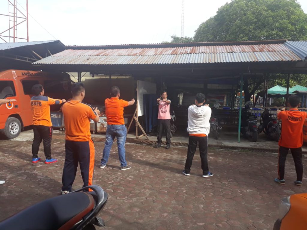 Seluruh satgas BPBD Kota Tanjungbalai melaksanakan kegiatan latihan jasmani dan latihan fisik untuk mengencangkan otot-otot yang kaku agar terlihat sehat dan bugar pada saat melaksanakan tugas baik tugas penjagaan di pulau beswesen maupun piket jaga malam di kantor BPBD Kota Tanjungbalai.