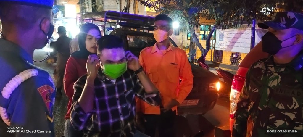Dari hasil Yustisi dan penyekatan pada malam ini masih banyak di dapati masyarakat kota tanjungbalai yang tidak mematuhi Protokol kesehatan dengan tidak menjaga jarak, berkumpul di keramaian dan tidak memakai Masker Tidakan yg diberikan nasehat dan Pemberia Masker oleh Personil.