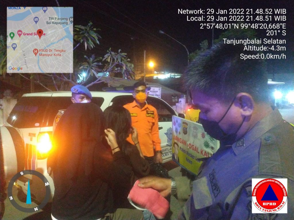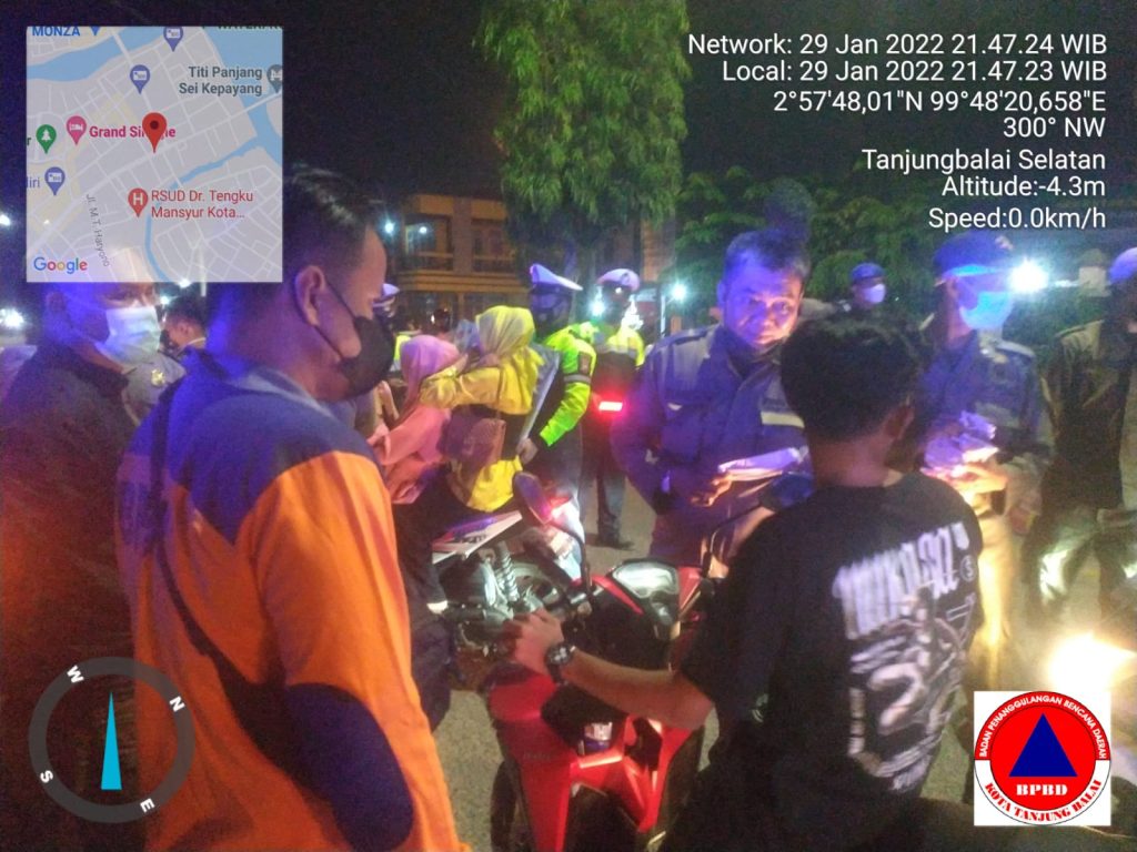 II.Pukul 21.30 Wib, Pelaksaan kegiatan di lakukan di beberapa titik pusat keramaian dan penyekatan di pintu masuk kota Tanjung balai, diantaranya: