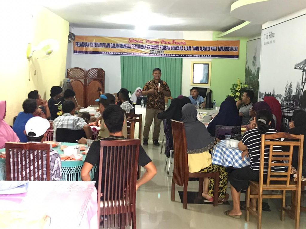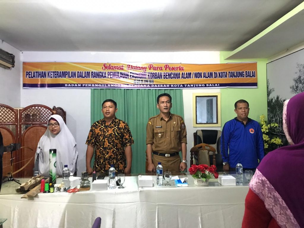 Kegiatan Pelatihan Keterampilan Dalam Rangka Pemulihan Ekonomi Korban Bencana Alam/Non Alam Pasca Bencana yang dilaksanakan pada hari Selasa s/d Jum’at Tanggal 25 s/d 28 Juni 2019 Pukul 08.00 s/d 16.00 WIB bertempat di Aula Wisma Al-Karim Jl. Pusara Selat Lancang Tanjungbalai.