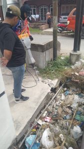 Drainase yang sebelumnya tidak berfungsi dan dipenuhi tumpukan sampah kini dibuka kembali untuk dilakukan pengerukan menggunakan eskavator, sebagai langkah pemulihan agar aliran air kembali lancar dan lingkungan menjadi lebih tertata.