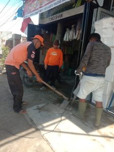 Pecahan beton tersebut kemudian dibersihkan agar tidak menghalangi aliran air.