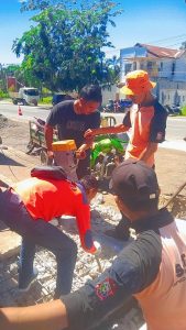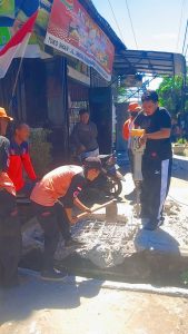 Pecahan beton tersebut kemudian dibersihkan agar tidak menghalangi aliran air.