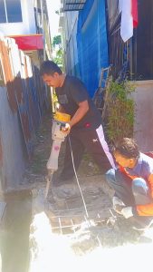5. Pembersihan Menyeluruh:Setelah batu atau coran beton dipecah, area tersebut dibersihkan dari puing-puing untuk memastikan aliran air kembali lancar.