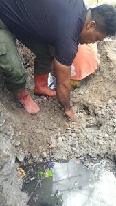 Penggalian: Melakukan penggalian sesuai ukuran rencana (misalnya, lebar 50 cm, panjang 300 cm, dan kedalaman 50 cm), dan meletakkan tanah galian di satu sisi saluran.