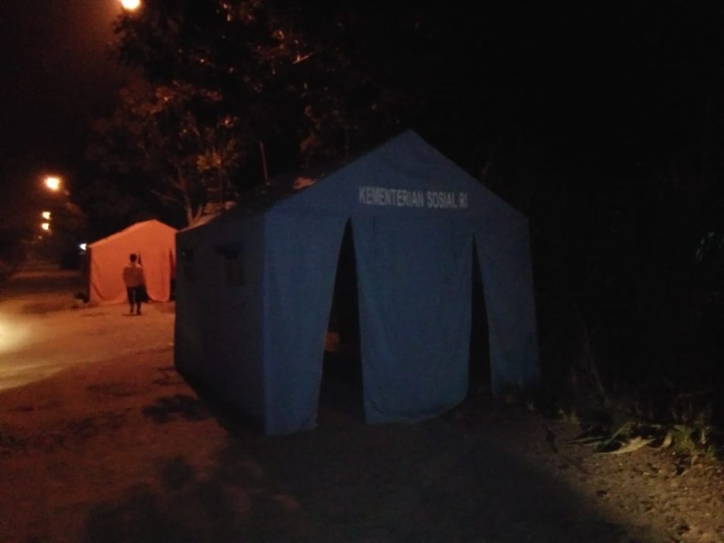 Satgas BPBD Kota Tanjungbalai berjaga jaga disetiap tenda pengungsi korban banjir agar selalu waspada kemungkinan terjadinya banjir.